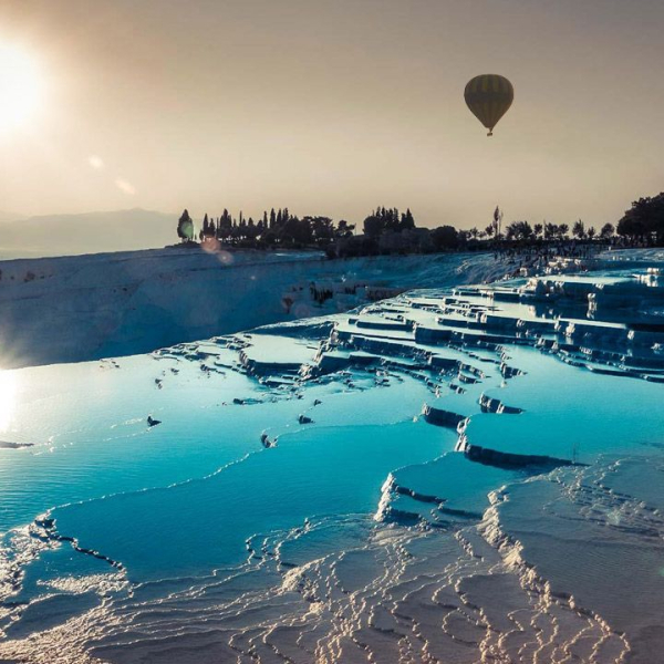 Pamukkale is a unique tourist attraction with her rich history and beautiful white Travertines. She is listed as a world heritage by Unesco. Now is your chance to see Pamukkale like never before; from above in a hot air balloon. Balloon flights over Pamukkale has started and this is a first in the region. Our guests will have the privilege to witness the beauty of the nature, the white travertines of Pamukkale, Menderes Valley, and ancient settlement of Hierapolis from a new perspective. Luxury guaranteed and full insurance included.